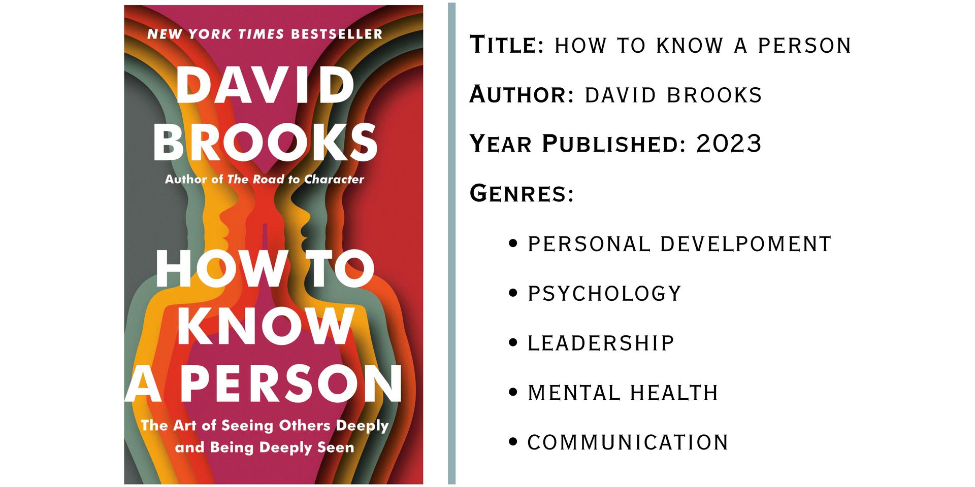 This week, weâre focusing on How to Know a Person: The Art of Seeing Others Deeply and Being Deeply Seen by David Brooks.