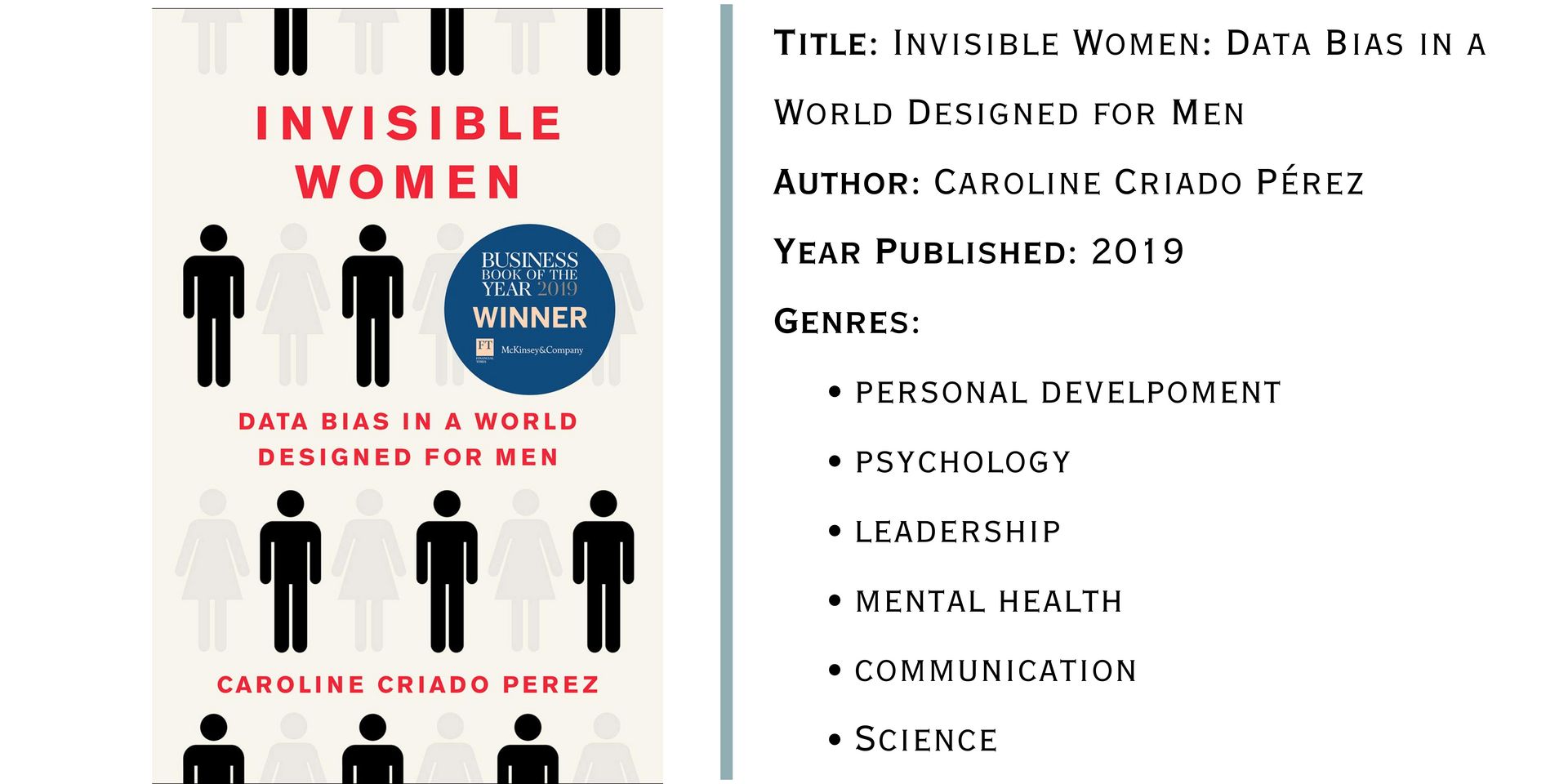 This week, weâre focusing on Invisible Women: Data Bias in a World Designed for Men by Caroline Criado PĂ©rez.